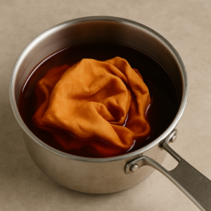 - Mordanting: Use alum (aluminum potassium sulfate) for most natural dyeing. Dissolve 10–15% of the fabric’s weight in water and simmer the fabric in this solution for one hour. Let it cool and sit overnight if possible, then rinse lightly.